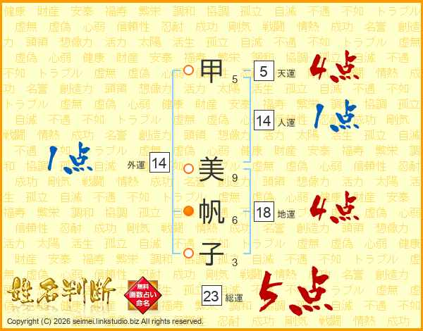 甲美帆子さんの総運は23画の5点!
