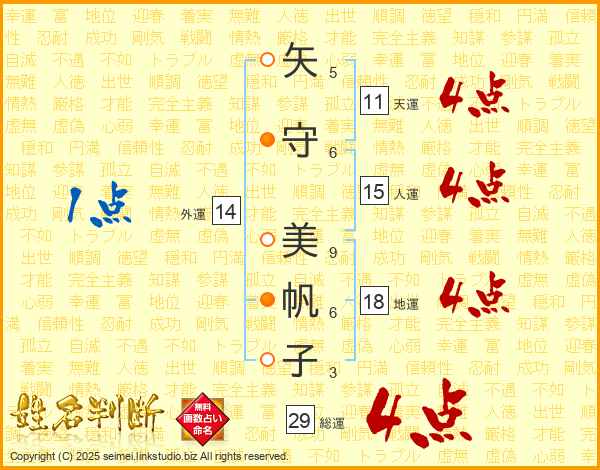 矢守美帆子さんの総運は29画の4点!