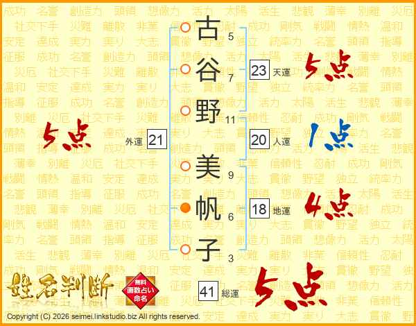 古谷野美帆子さんの総運は41画の5点!