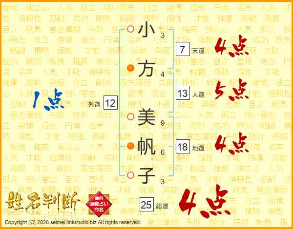 小方美帆子さんの総運は25画の4点!