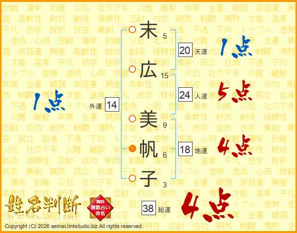 末広美帆子さんの総運は38画の4点!