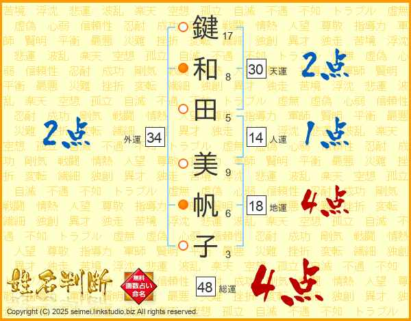 鍵和田美帆子さんの天運は30画の2点