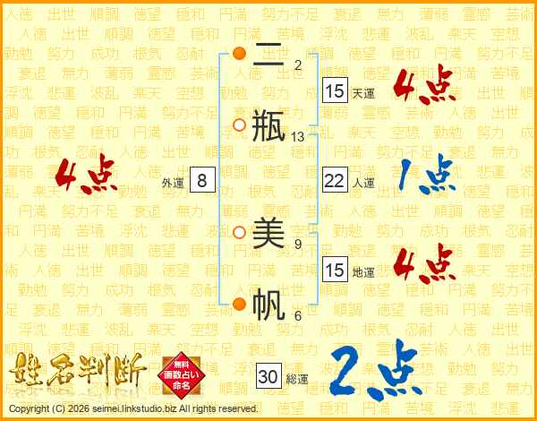 二瓶美帆さんの総運は30画の2点!