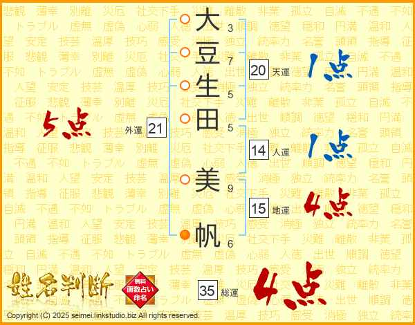 大豆生田美帆さんの総運は35画の4点!