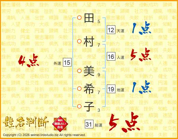 田村美希子さんの総運は31画の5点!