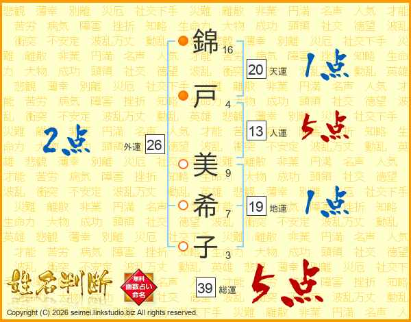 錦戸美希子さんの総運は39画の5点!