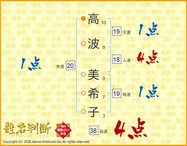 高(10画)波(9画) 美(9画)希(7画)子(3画)