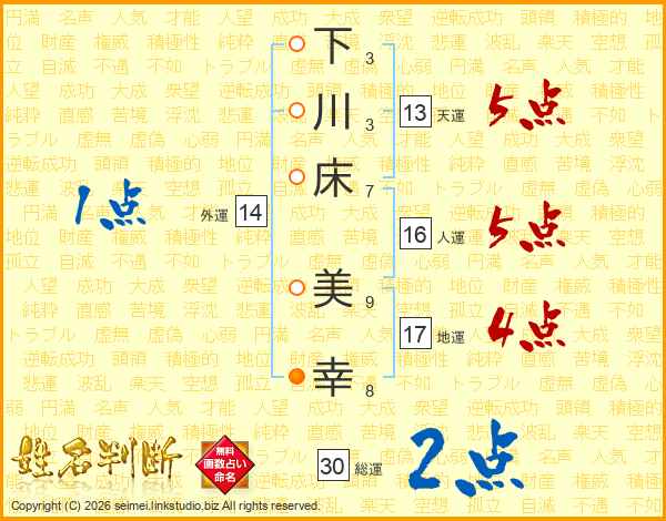 下川床美幸さんの地運は17画の4点!