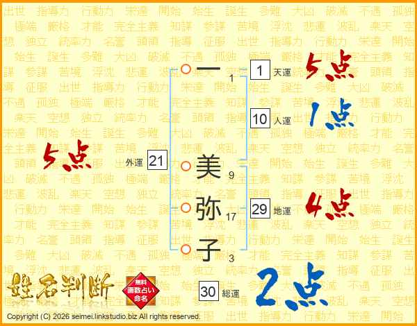 一(1画) 美(9画)弥(17画)子(3画)