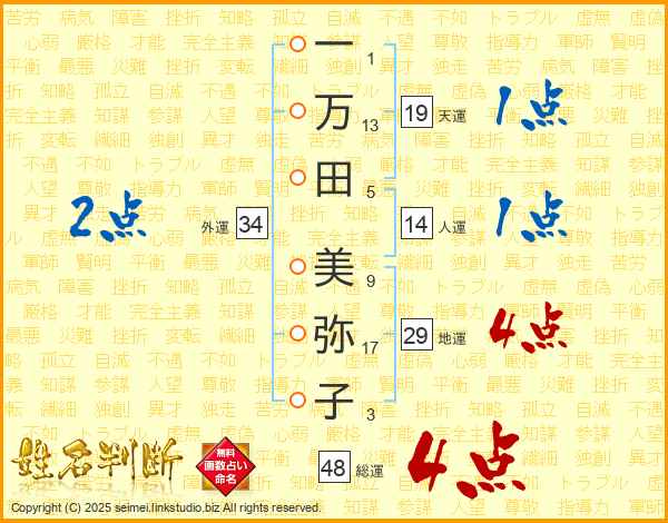 一万田美弥子さんの天運は19画の1点!