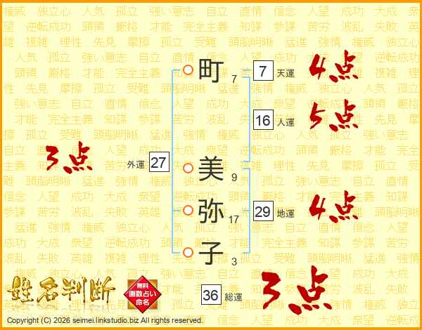 町(7画) 美(9画)弥(17画)子(3画)