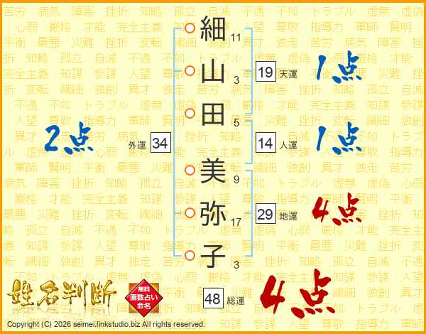 細山田美弥子さんの総運は48画の4点!
