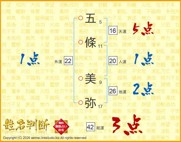 五條美弥さんの地運は26画の2点!