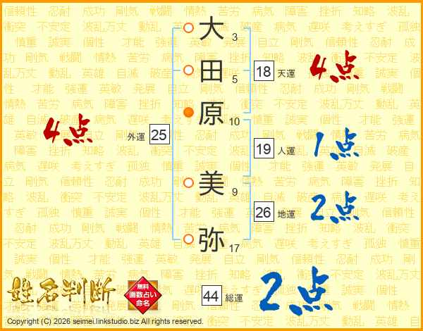 大田原美弥さんの総運は44画の2点!
