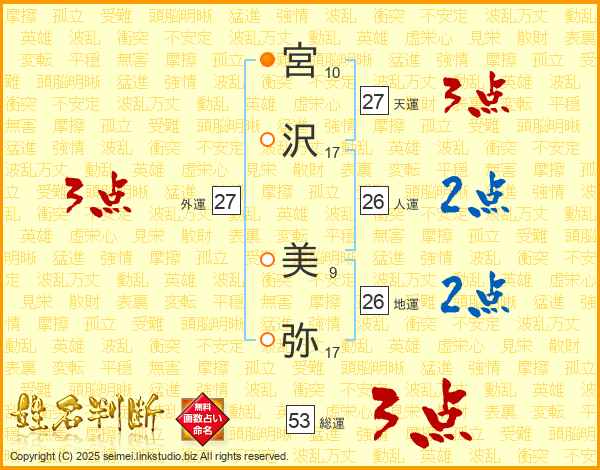 宮沢美弥さんの天運は27画の3点!