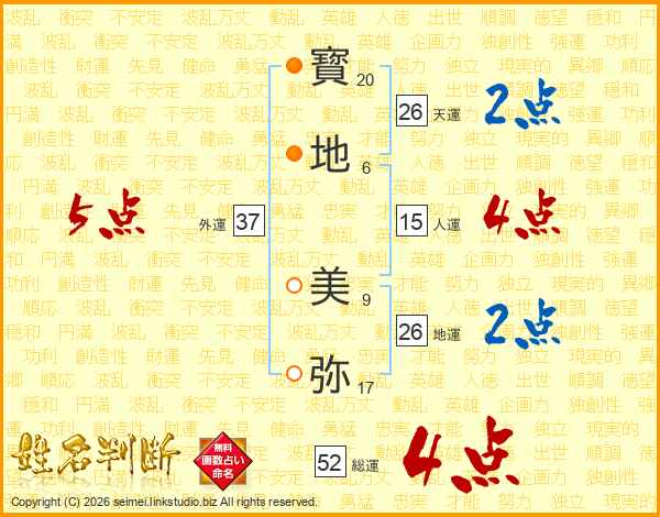 寳地美弥さんの総運は52画の4点!