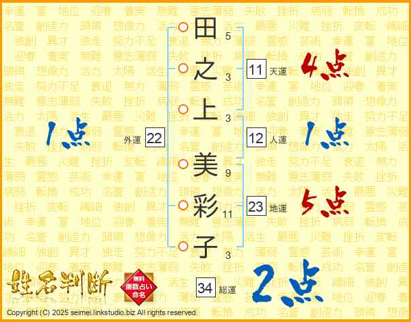 田之上美彩子さんの天運は11画の4点!