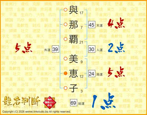 與那覇美恵子さんの天運は45画の4点!