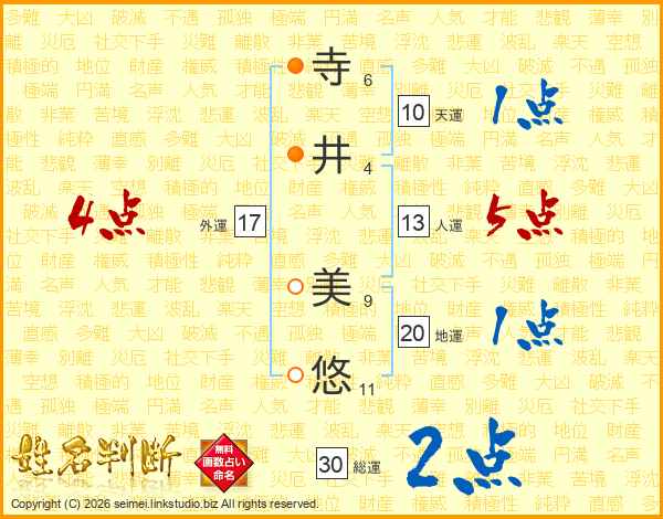 寺(6画)井(4画) 美(9画)悠(11画)