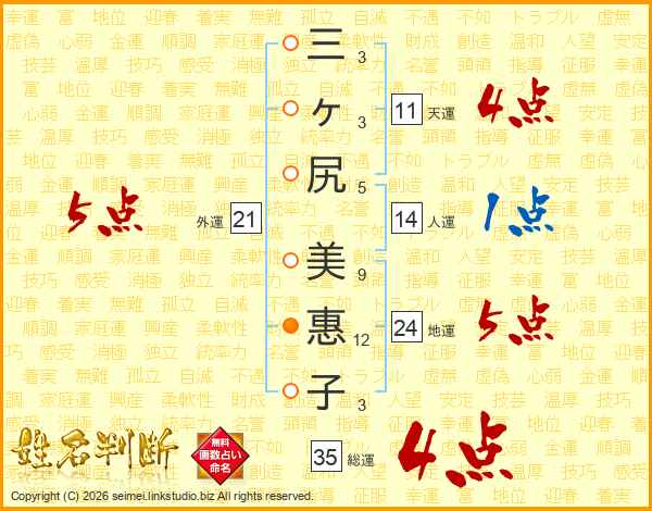 三ヶ尻美惠子さんの総運は35画の4点!
