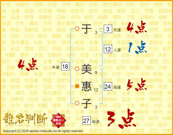 于美惠子さんの外運は18画の4点!