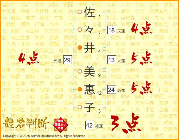 佐々井美惠子さんの外運は29画の4点!