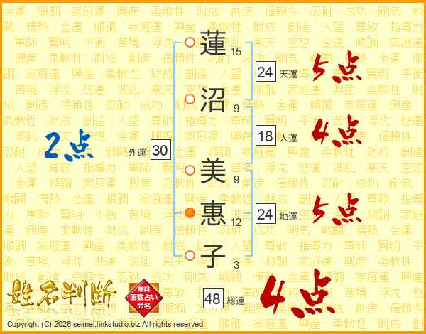 蓮沼美惠子さんの総運は48画の4点!