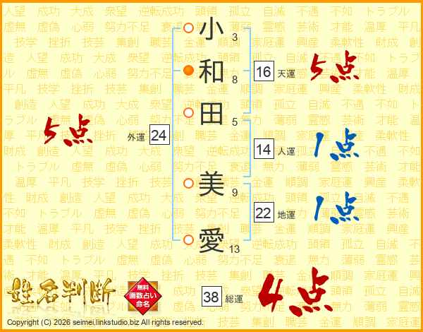 小(3画)和(8画)田(5画) 美(9画)愛(13画)