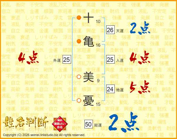 十亀美憂さんの天運は26画の2点!