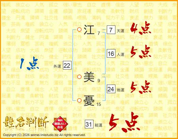 江美憂さんの人運は16画の5点!