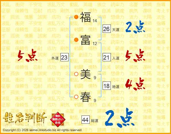 福富美春さんの天運は26画の2点!