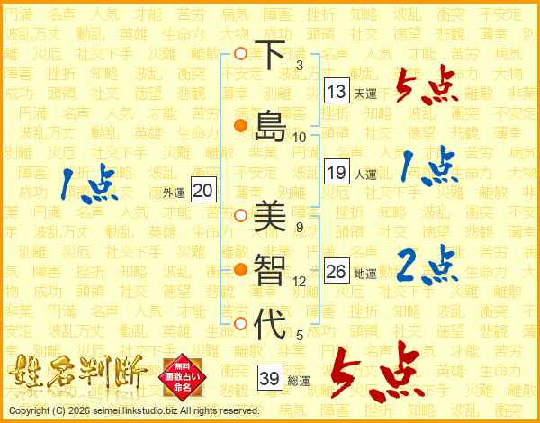 下(3画)島(10画) 美(9画)智(12画)代(5画)