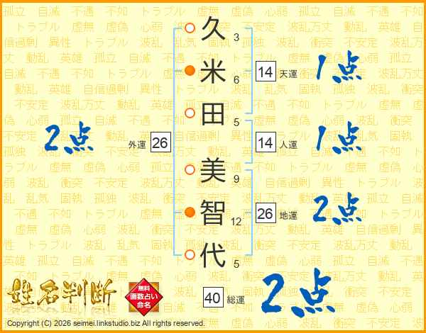 久(3画)米(6画)田(5画) 美(9画)智(12画)代(5画)