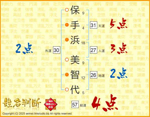 保手浜美智代さんの総運は57画の4点!