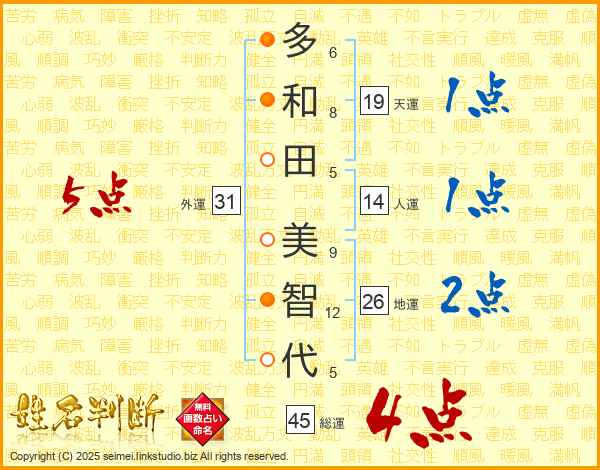 多和田美智代さんの総運は45画の4点!