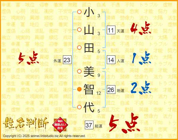 小(3画)山(3画)田(5画) 美(9画)智(12画)代(5画)