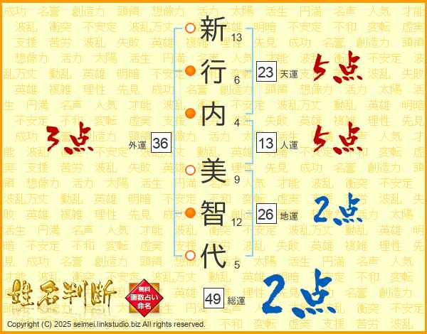 新行内美智代さんの外運は36画の3点!