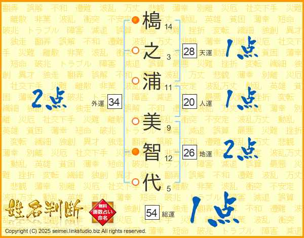 槝(14画)之(3画)浦(11画) 美(9画)智(12画)代(5画)