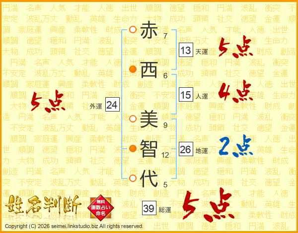 赤西美智代さんの外運は24画の5点!