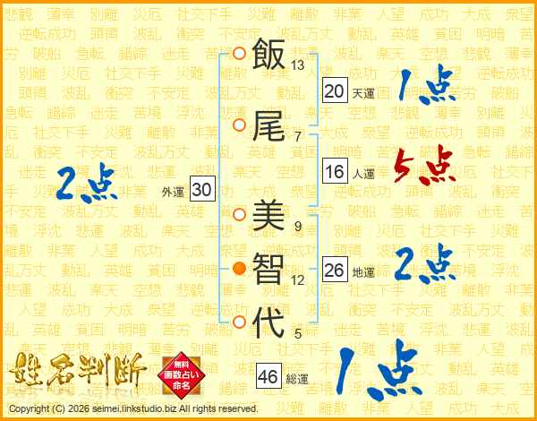 飯尾美智代さんの総運は46画の1点!