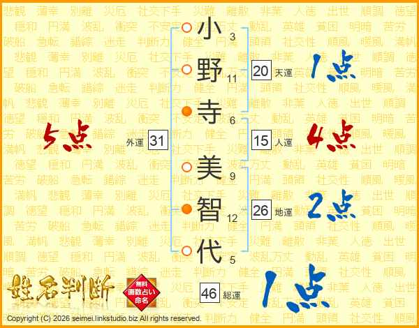 小野寺美智代さんの総運は46画の1点!