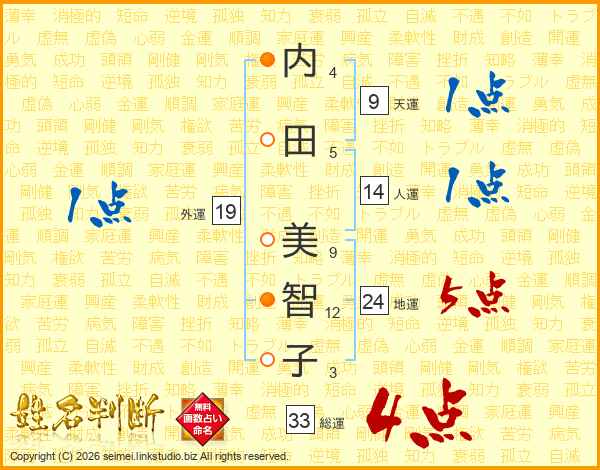 内田美智子さんの総運は33画の4点!