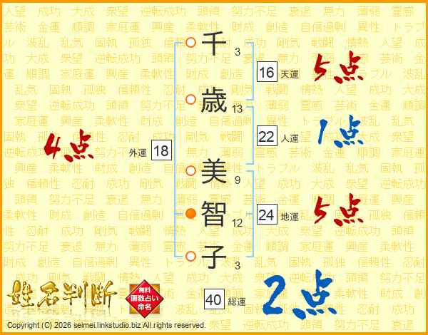 千歳美智子さんの外運は18画の4点!