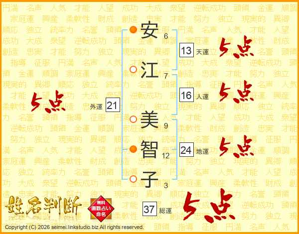 安江美智子さんの外運は21画の5点!