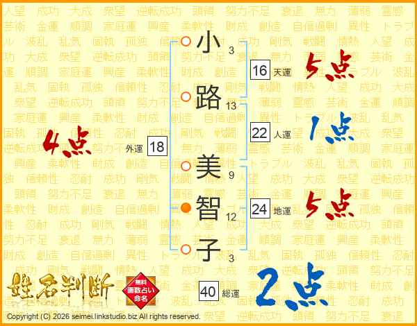 小路美智子さんの総運は40画の2点