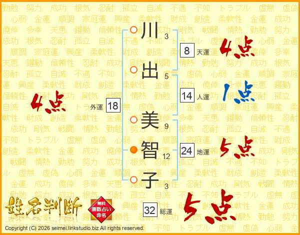 川出美智子さんの総運は32画の5点!