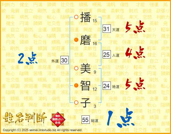 播(15画)磨(16画) 美(9画)智(12画)子(3画)