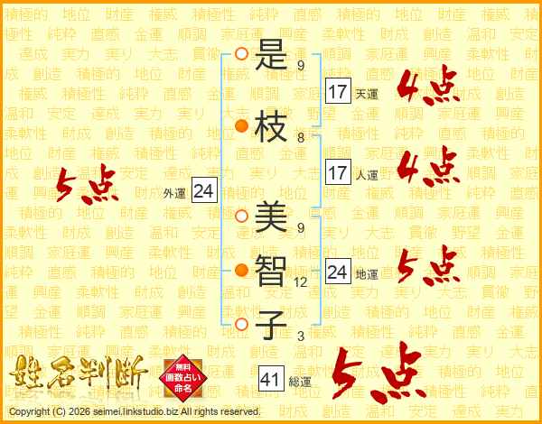 是枝美智子さんの総運は41画の5点!