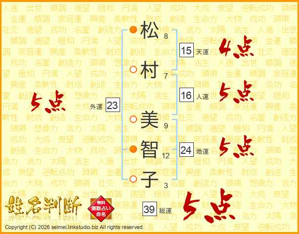 松村美智子さんの総運は39画の5点!