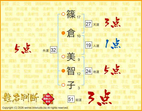 篠倉美智子さんの外運は32画の5点!